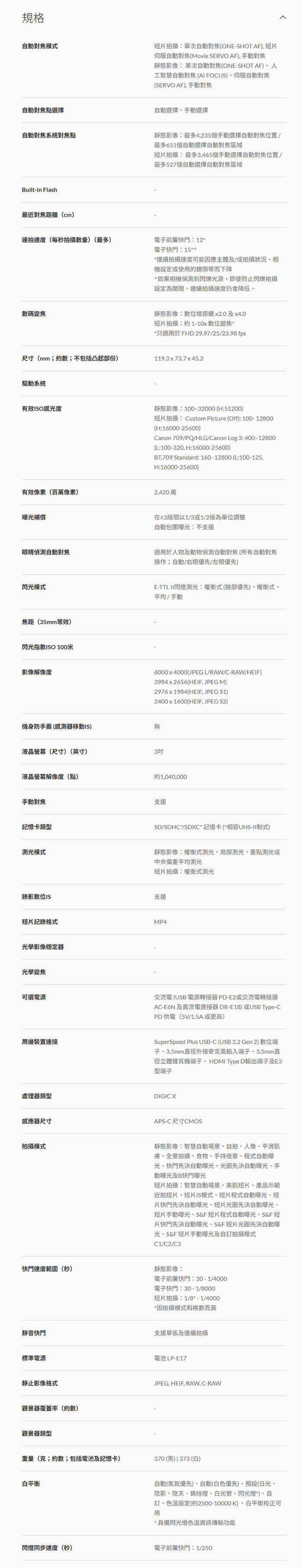 .支援 10-bit 無裁切6K超取樣4K 30p短片及 Canon Log 3。