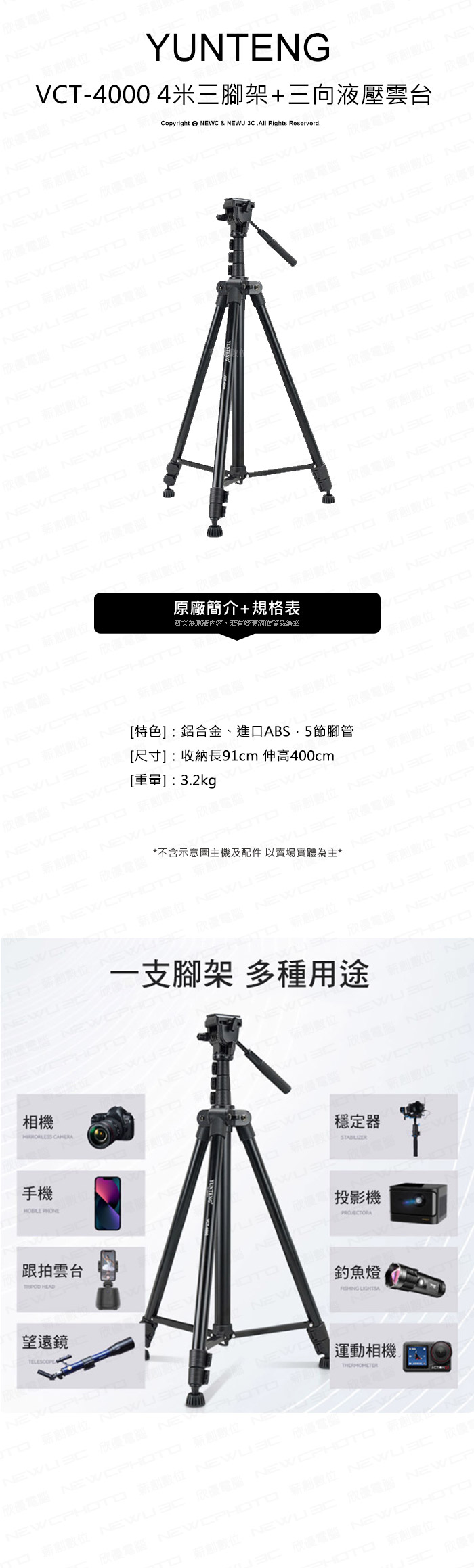 YUNTENG 雲騰 VCT-4000 液壓雲台三腳架