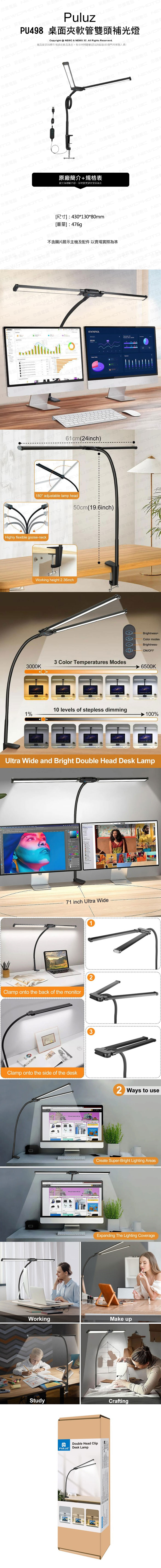 PULUZ 胖牛 PU498 桌面夾軟管雙頭補光燈 鵝頸雙管檯燈 可調色溫 可雙螢幕分邊照明