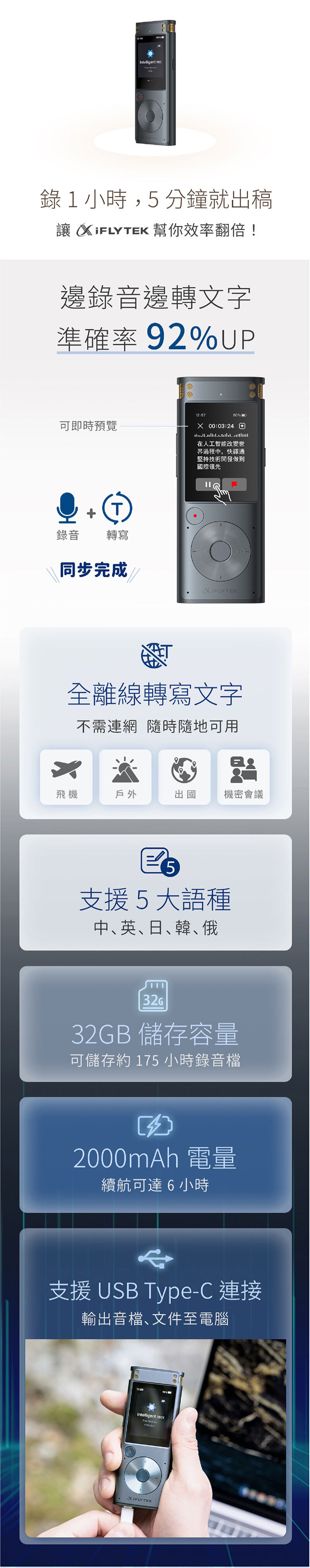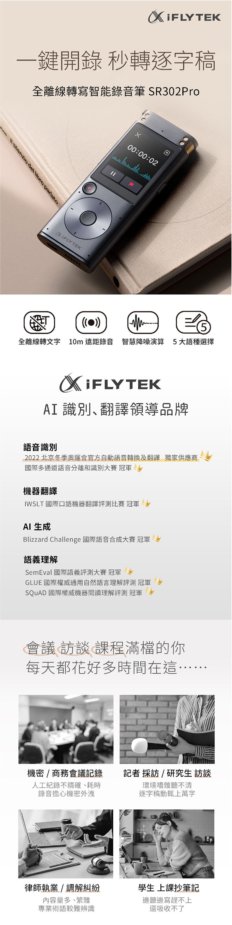[iFLYTEK科大訊飛] SR302 PRO 全離線轉寫智能錄音筆