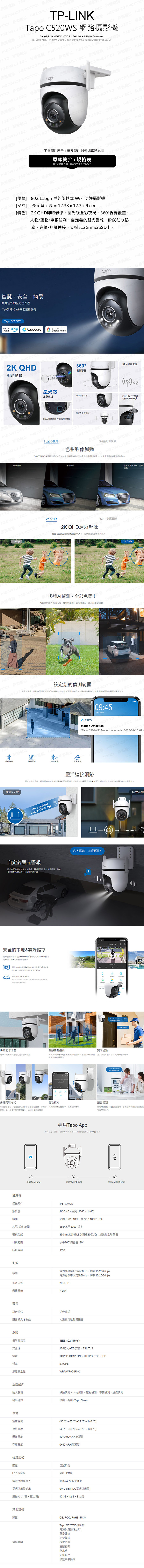 TP-Link Tapo C520WS 2K QHD 400萬 WiFi監視器 戶外旋轉攝影機 全彩夜視 (不含記憶卡)