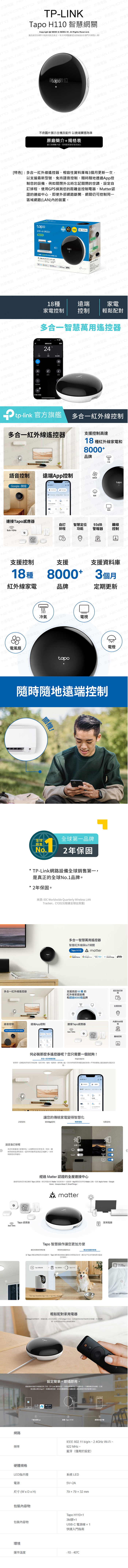 TP-LINK Tapo H110 智慧網關 多合一紅外線與IoT APP控制 語音控制 支援Matter 萬用遙控器