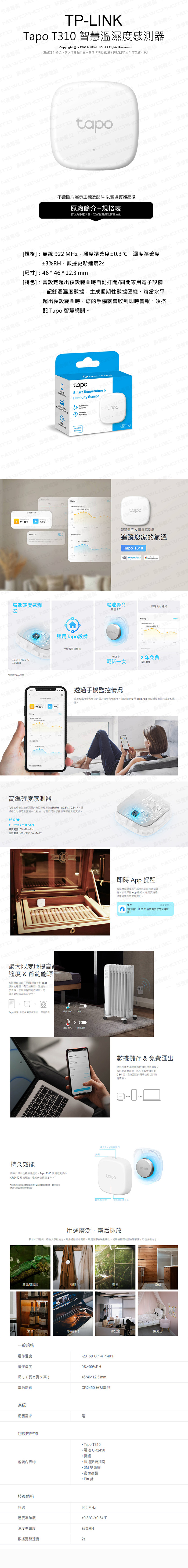TP-LINK Tapo T310 智慧溫濕度感測器 (智慧家庭/即時監控/智慧連動/簡易安裝/Tapo APP)