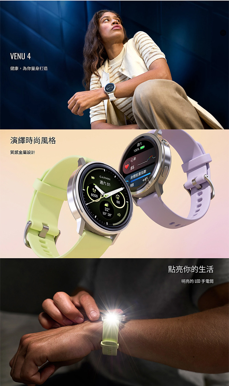 內建LED手電筒、揚聲器、麥克風及多種感測器,預載80+運動模式,輕巧俱全