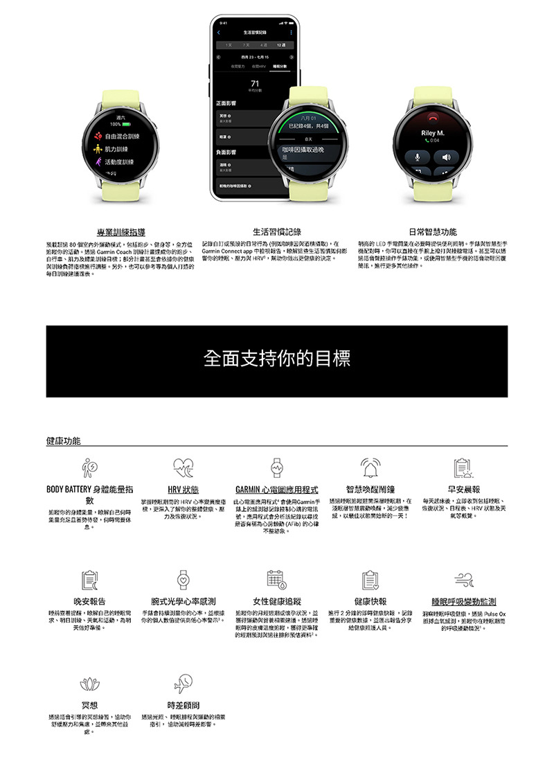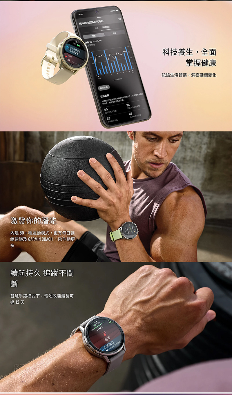 全天候的身體監測,進階睡眠追蹤,支援GARMIN PAY感應支付