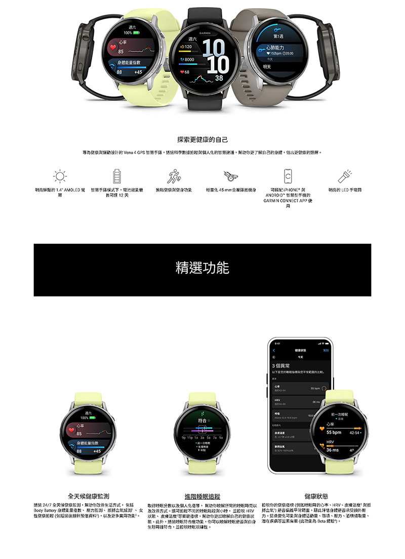 Garmin Venu 4 GPS 智慧腕錶 – 45mm